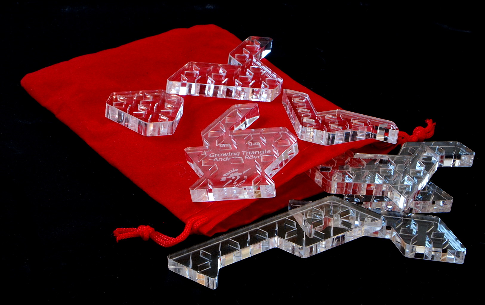 The result is "Growing Triangles". The puzzle consists of 12 pieces. Your task is to select a subset of these pieces and build a triangle. You start with 2 pieces and then with 3, 4... and so on all the way up to all 12 pieces. For each subset there is exactly one solution.