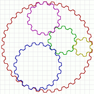 Once back home I started writing a little program that could do the necessary calculations for gears. It can handle proper touching circles and it can calculate if 2 gears properly mesh or if the teeth would overlap.